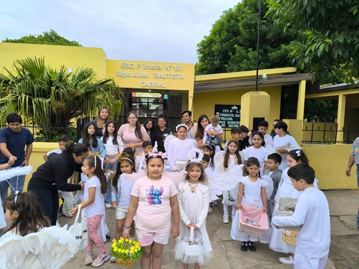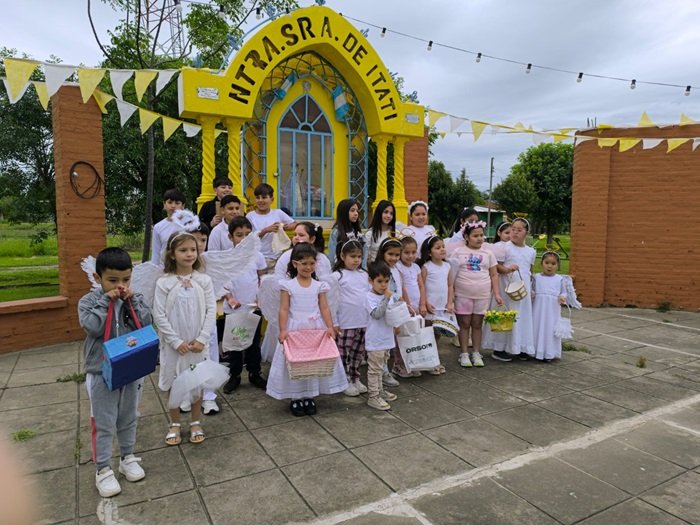 Los pequeños, vestidos de ángeles, recorrieron las calles de la localidad pidiendo bendiciones y recibiendo colaciones, en una colorida actividad que busca mantener vivas las costumbres locales. Organizado por el Instituto de Ingles Mary Peace a cargo de la Prof. María Benítez se trasladaron desde la Gruta Virgen de Itatí hasta la Parroquia